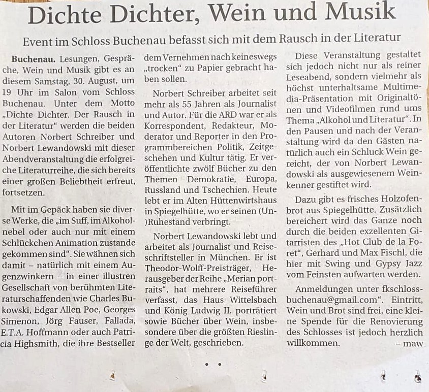 Charles Bukowski oder Edgar Allan Poe, Vertreter der amerikanischen Literatur sind auch Permanent-Trinker. Krimiautoren lieben scharfe Getränke, Georges Simenon oder Jörg Fauser waren dem Alkohol